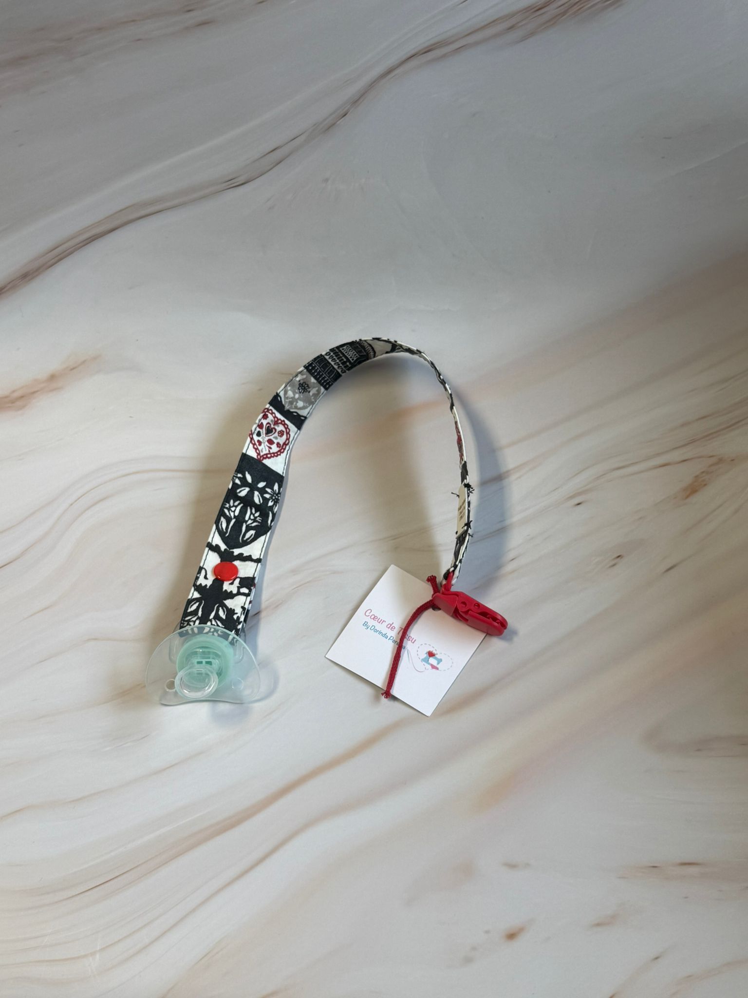 Gardez la sucette de votre bébé toujours propre et à portée de main grâce à cette attache sucette pratique et sécurisée. Fini les sucettes perdues ou qui tombent par terre!